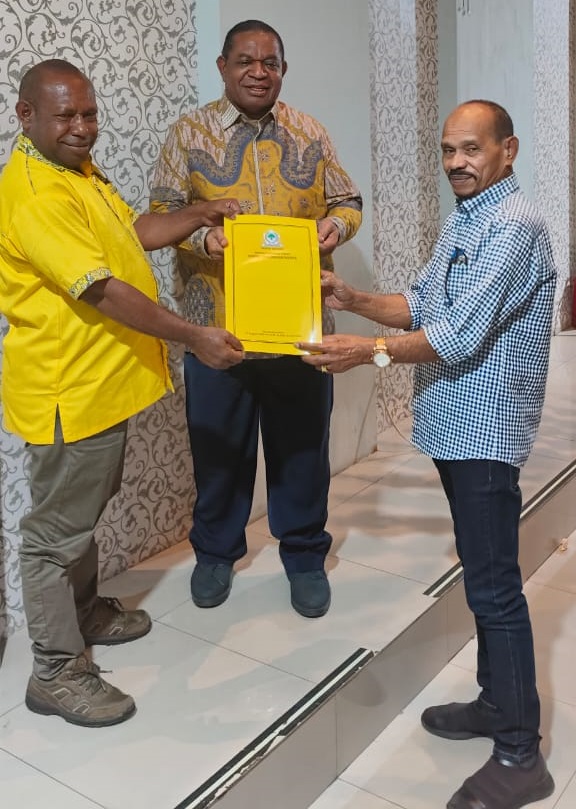 JAKARTA, ODIYAIWUU.com — Pasangan Theodorus Sitokdana dan Terianus Keduman atau TEDU, Selasa (27/8) pukul 01.00 WIB resmi menerima Surat Keputusan B1-KWK dari Dewan Pimpinan Pusat (DPP) Partai Golkar untuk maju sebagai calon Bupati dan Wakil Bupati Kabupaten Pegunungan Bintang, Provinsi Papua Pegunungan pada Pilkada November 2024.