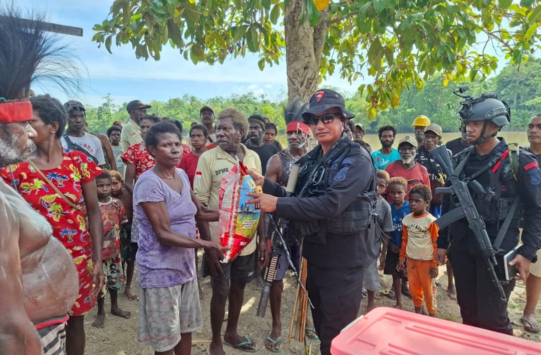 Sebagai bentuk kepedulian kemanusiaan, Danyon Brimob juga menyerahkan bantuan sembako secara simbolis kepada masyarakat setempat.