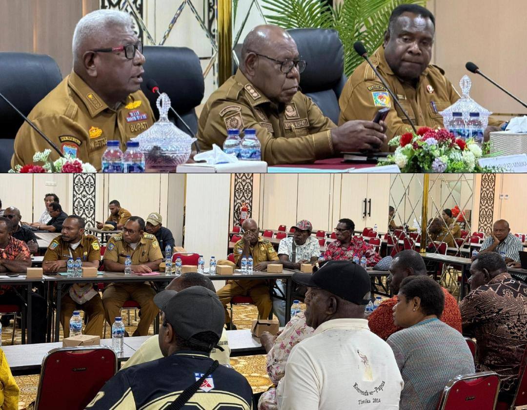 TIMIKA, ODIYAIWUU.com — Bupati Kabupaten Mimika Johannes Rettob dan Wakil Bupati Mimika Emanuel Kemong, Senin (23/2) mengundang para tokoh masyarakat dan adat bertemu di Kantor Badan Pengelola Keuangan dan Aset Daerah (BPKAD) Mimika, Provinsi Papua Tengah.