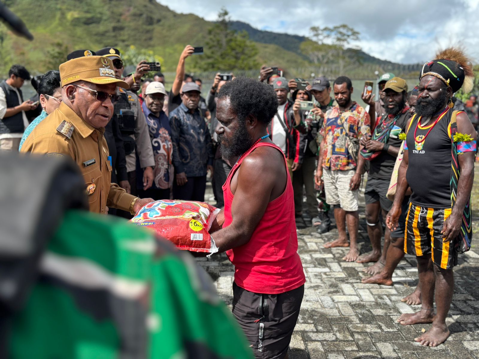 Dalam momen penyerahan bantuan sembako tersebut, Bupati Elvis Tabuni menyampaikan rasa prihatin terhadap warganya yang harus mengungsi jauh dari Puncak ke Puncak Jaya.
