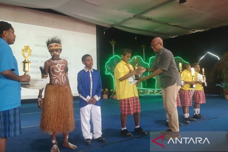 Puncak perayaan Bulan Bahasa dirangkaikan dengan peringatan Hari Sumpah Pemuda 28 Oktober digelar di gedung olahraga SATP Timika di kawasan Kampung Wonosari Jaya SP4 Timika. (*)