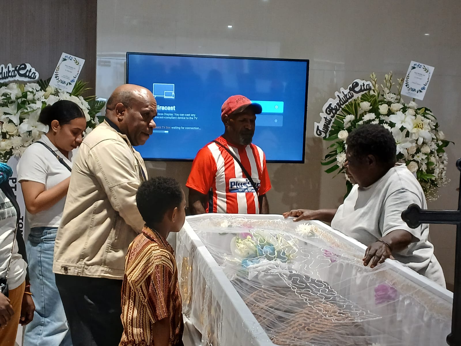 Wakil Bupati Kabupaten Mimika Emanuel Kemong tampak hadir di Lantai 6 RS St Carolus sebelum jenazah dibawa Ruangan Gabriel untuk disemayamkan. Begitu pula Pembina Yayasan Yayasan Bina Teruna Indonesia Bumi Cenderawasih (Binterbusih) Semarang Paul Sudiyo.