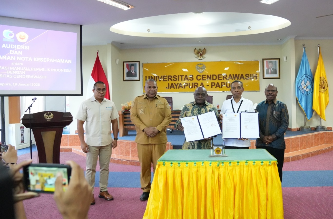 JAYAPURA, ODIYAIWUU.com — Kementerian Hak Asasi Manusia (HAM) Republik Indonesia dan Universitas Cenderawasih (Uncen), Senin (19/1) menandatangani nota kesepahaman kerja sama atau Memorandum of Understanding (MoU) di Jayapura, kota Provinsi Papua.