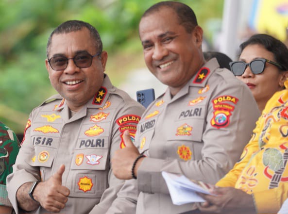 Kepala Divisi Humas Polri Irjen Pol Johnny Eddizon Isir, SIK, MTCP (kiri) dan Kapolda Papua Barat Brigjen Pol Alfred Papare, SIK (kanan). Foto: Istimewa