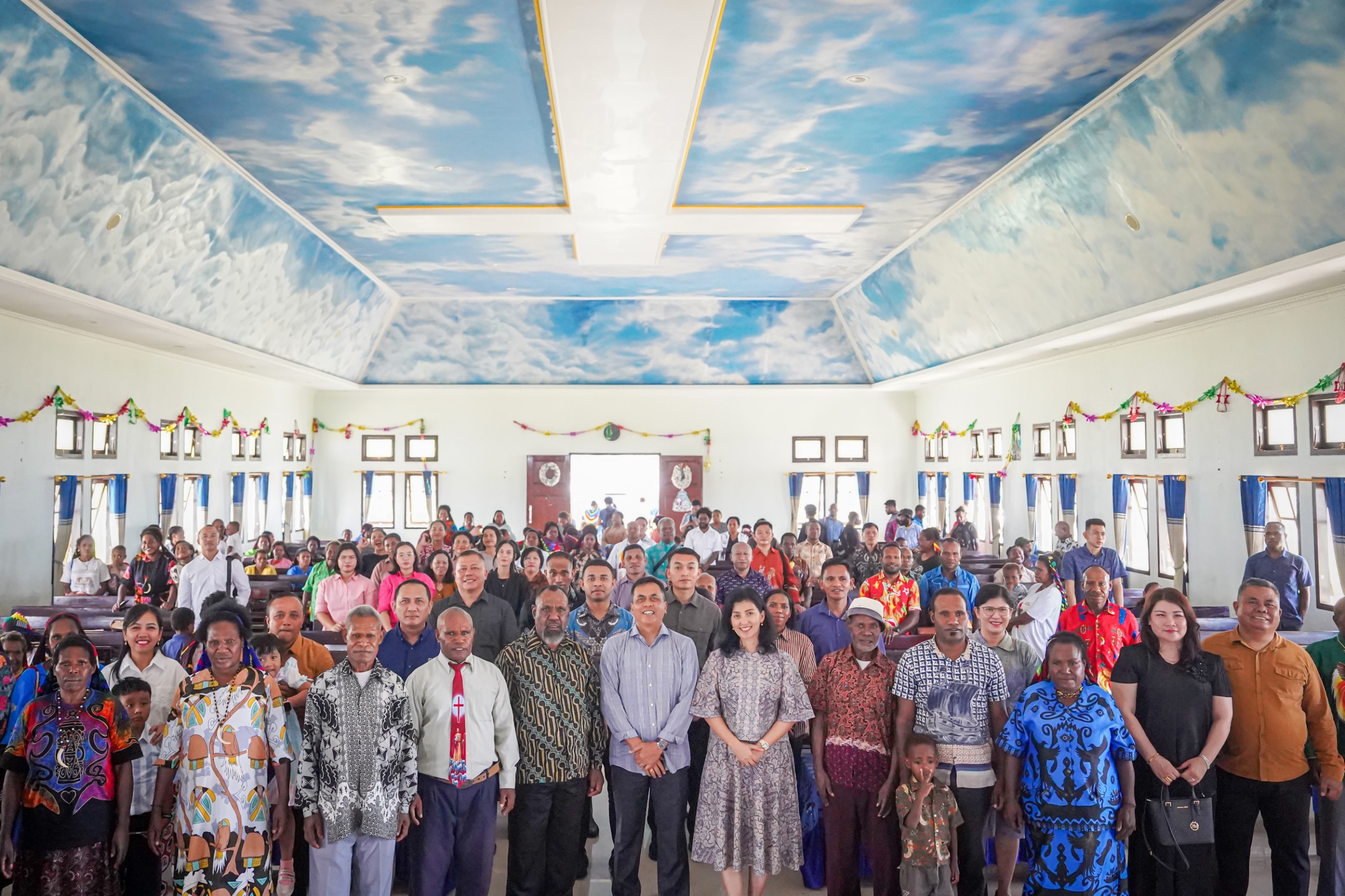 Pamen Ahli Bidang Jemen Sishaneg Kolonel Inf Marianus Moat Lukas Sadipun; Kapaldam Kolonel Cpl Joto Wirotomo Marpaung, SM, MIP; Waaster Kasdam Letkol Inf Marudut H Simbolon; Wakainfolahtadam Letkol Inf Irianto Keliopas Yandewoa; dan pengurus serta jemaat Gereja GIDI Kasih Abua. (*)