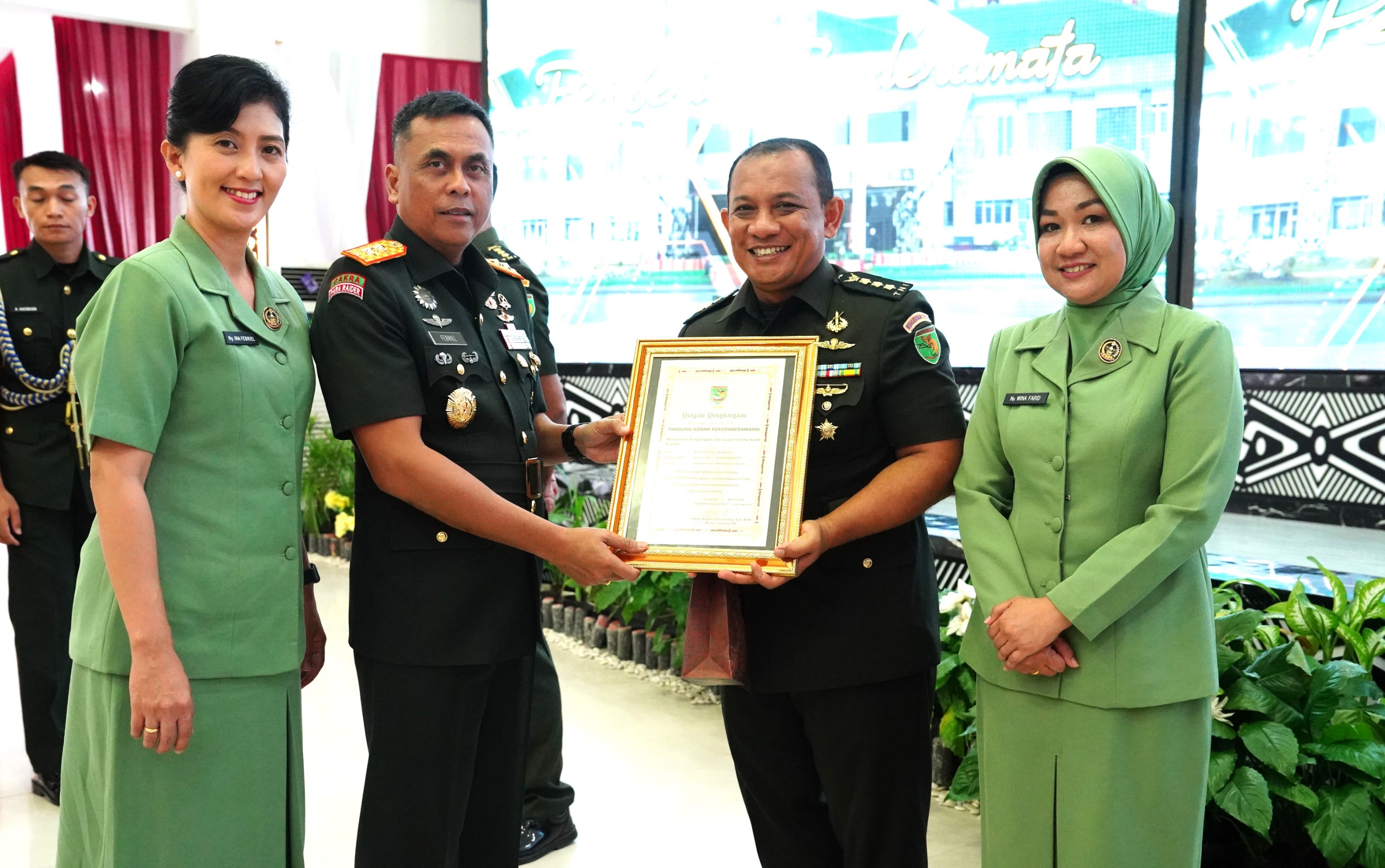Selain itu Danrem 172/PWY Brigjen TNI Robby Suryadi, S.Sos; Danrindam Brigjen TNI Endra Saputra Kusuma ZR, SE, M.Si, M.Han; para Asisten Kasdam, Dan/Ka Balakdam serta Persit Kodam Cenderawasih. (*)