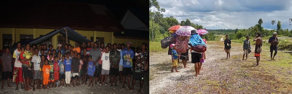 Sedangkan sebagian warga dari dua distrik tersebut meninggalkan kampung halaman berjalan kaki lalu tinggal di rumah warga Kampung Yunusugu, Kabupaten Asmat, Provinsi Papua Selatan.