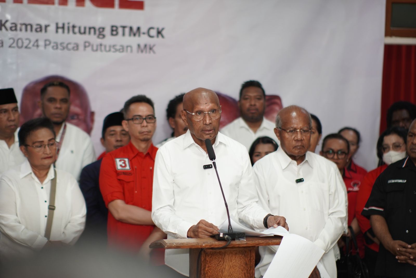 Menurutnya, paslon BTM-CK menyadari bahwa masih ada tahapan rekapitulasi berjenjang hingga KPU Papua. Oleh karena itu, ia menyerukan kepada semua pihak untuk terus mengawal suara rakyat hingga penetapan resmi oleh KPU Papua. ”Seruan ini bukan untuk curiga, tapi mengingatkan. Bukan karena takut, tapi percaya semua pihak punya niat yang sama,” ujarnya.