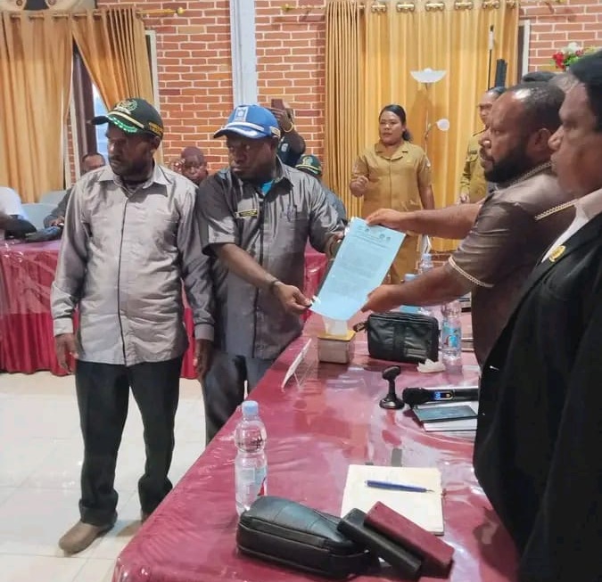 NABIRE, ODIYAIWUU.com — Sejumlah elemen warga yang terdiri dari pelajar, mahasiswa, dan masyarakat asal Kabupaten Dogiyai, Selasa (9/9) secara resmi menyerahkan aspirasi terkait rencana pembentukan daerah otonom baru (DOB) Kabupaten Mapia Raya kepada Dewan Perwakilan Provinsi (DPRP) Papua Tengah di Cafe Kari Kurung, Nabire.