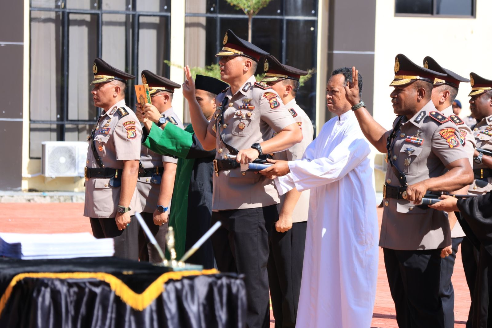 JAYAPURA, ODIYAIWUU.com — Kepala Kepolisian Daerah Papua Irjen Pol Mathius D Fakhiri, SIK, MH, Rabu (10/7) memimpin upacara serah terima jabatan Pejabat Utama (PJU) Polda Papua dan 11 Kepala Kepolisian Resor jajaran Polda Papua di Lapangan Apel Polda Papua Baru, Kampung Koya Koso.
