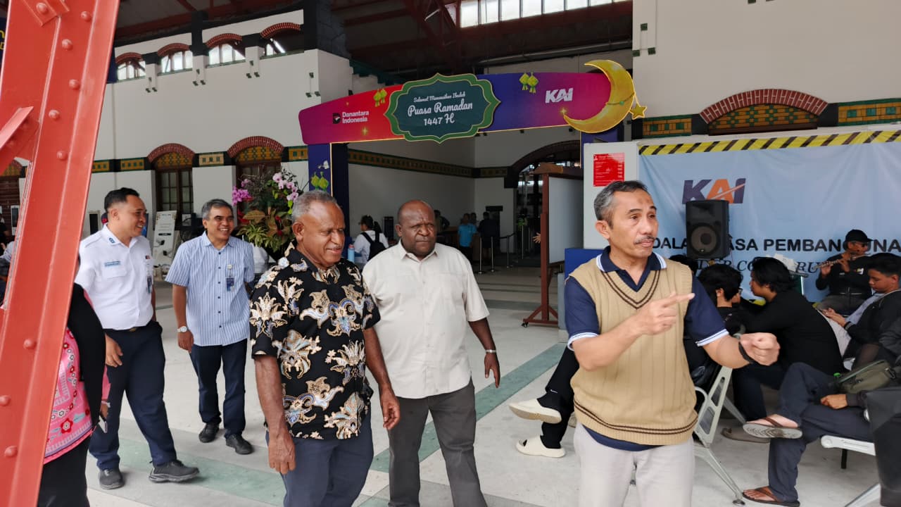 Staf Khusus Menteri HAM Bidang Penegakan HAM Martinus Pigai serta Staf Khusus Menteri HAM Bidang Hubungan Antar Lembaga dan Hubungan Internasional Herman Dogopia melakukan pemantauan di Stasiun Tawang Semarang dan Terminal Penggaron.