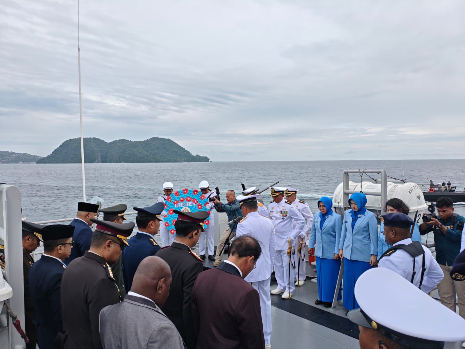 JAYAPURA, ODIYAIWUU.com — Dalam rangka memperingati Hari Dharma Samudera Tahun 2026 diadakan Upacara Tabur Bunga di atas KRI TTH-853 yang bersandar di Dermaga Porasko, Jayapura Utara, Papua, Kamis (15/1).