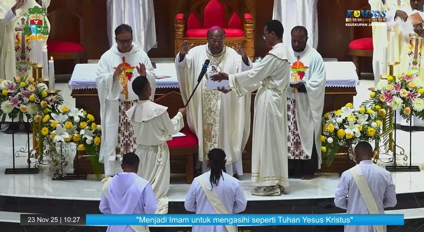“Mereka (ketiga imam) juga diberikan tugas untuk mewartakan Kabar Gembira, Kabar Keselamatan agar orang percaya bertobat. Mereka juga akan berbuat baik seperti Yesus yang datang untuk melayani dengan penuh kasih,” ujar Uskup Matopai dalam homilinya yang disiarkan melalui laman YouTube Komisi Sosial (Komsos) Jayapura, Papua, Minggu (23/11).